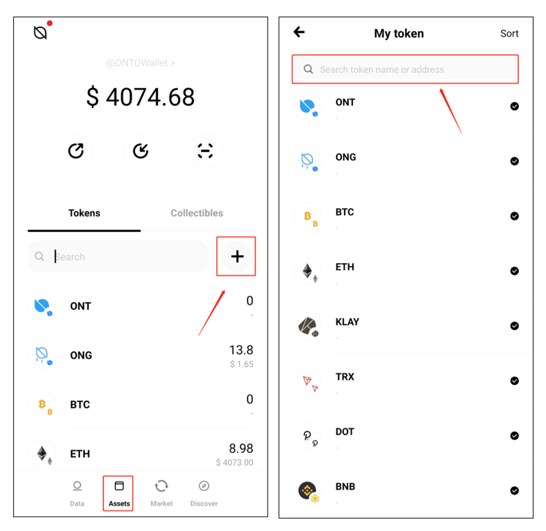 Enter the “Assets” page and click “+” to go to the asset management page. Click the search field.