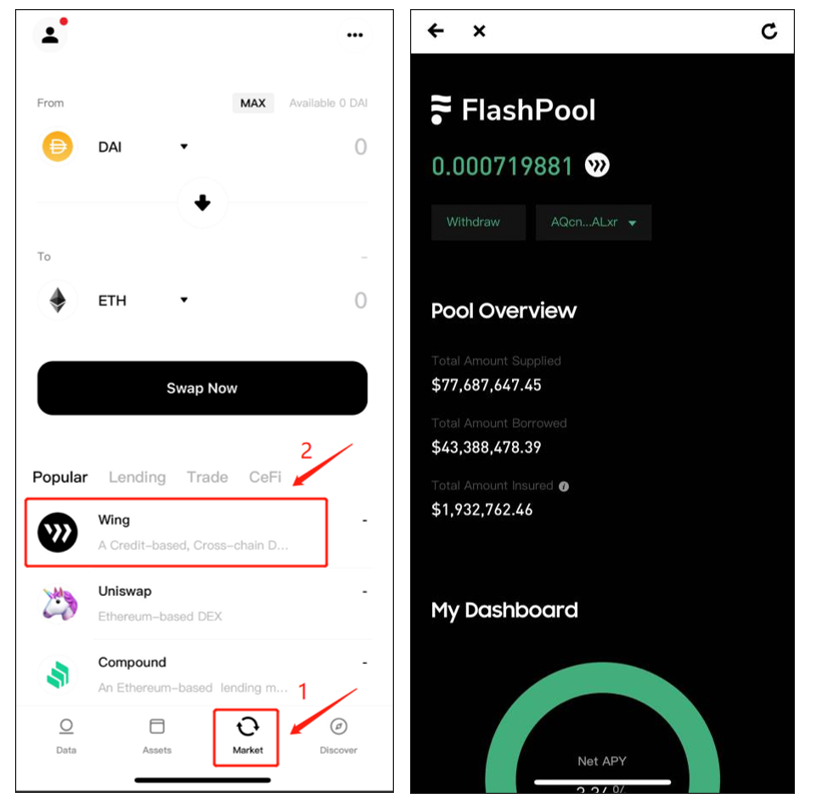 Open ONTO, and enter the “Market” page to go to Wing. Enter Flash Pool from the Wing page.